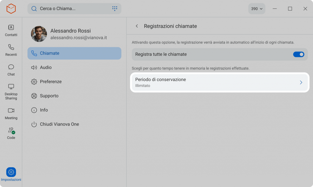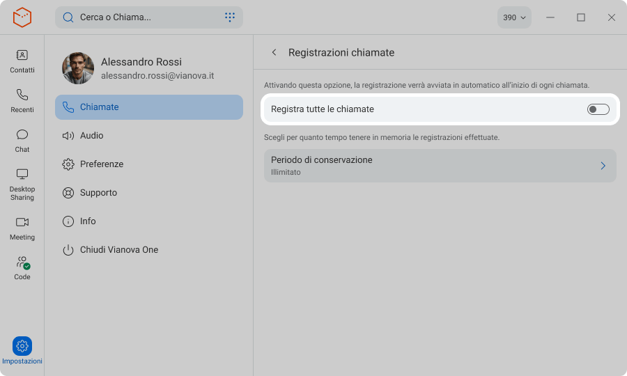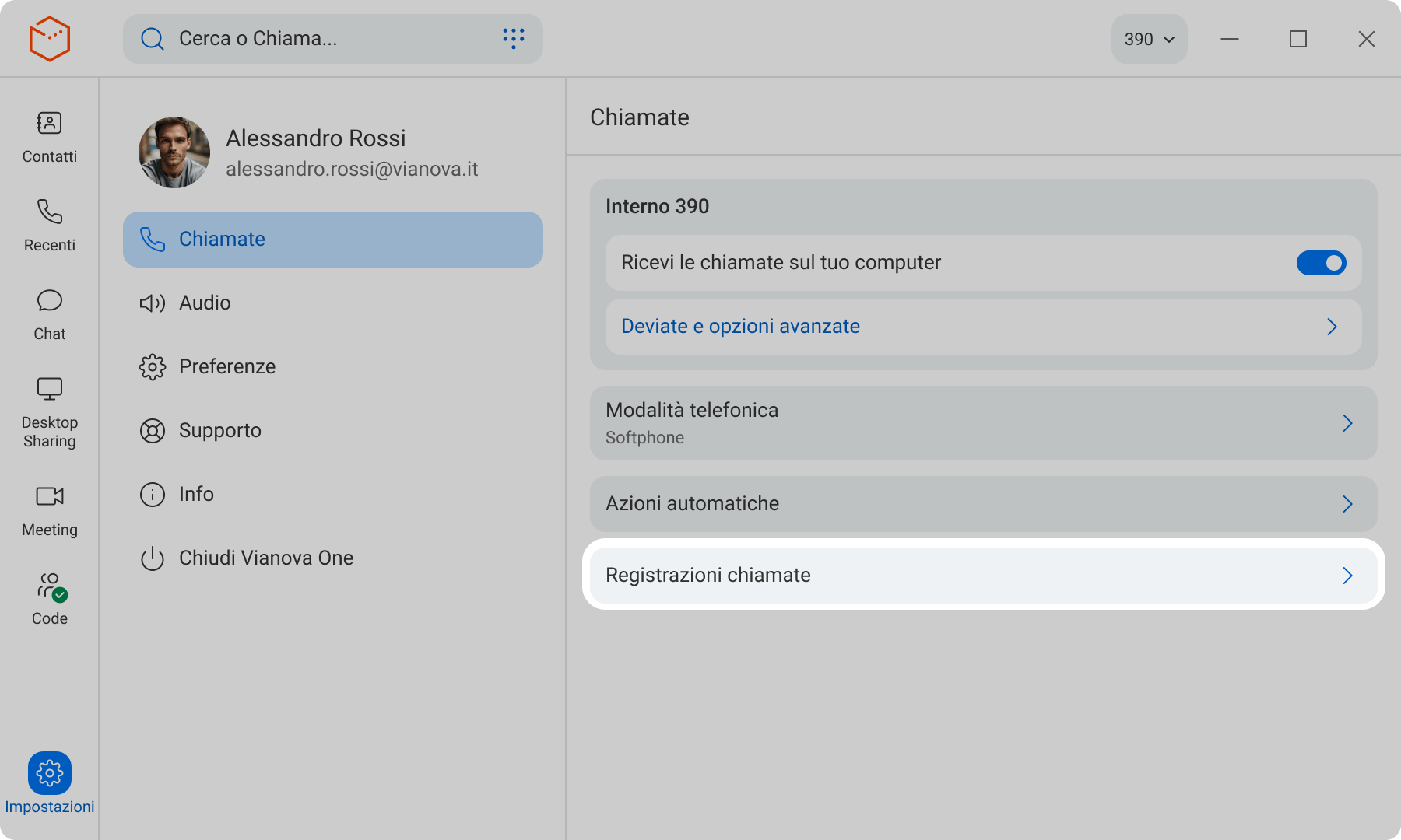 Vianova One può essere utilizzata in Modalità Softphone oppure in Modalità CTI.